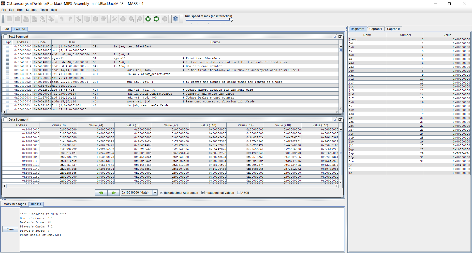 Blackjack MIPS in Assembly